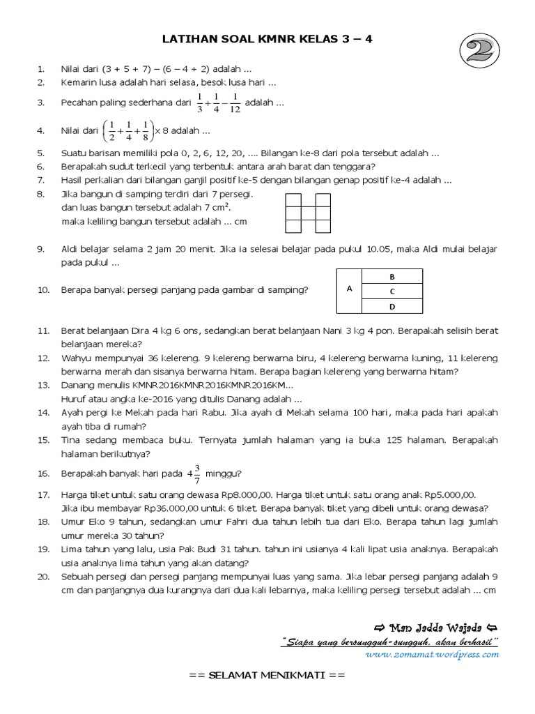 Artikel ini akan membahas secara mendalam mengenai kumpulan soal latihan KMNR IPA Kelas 3. Kami akan mengulas jenis-jenis soal yang sering muncul, strategi jitu dalam menjawabnya, serta pentingnya latihan berkelanjutan untuk mencapai hasil optimal. Dengan pemahaman yang komprehensif, diharapkan siswa kelas 3 dapat lebih percaya diri dan siap menghadapi tantangan dalam kompetisi IPA, bahkan dalam skala yang lebih luas.